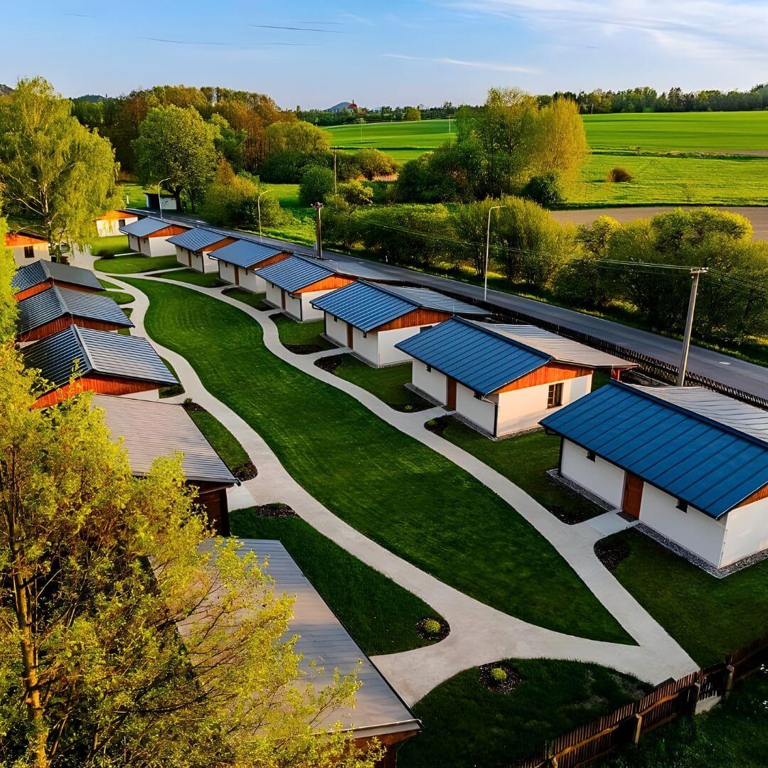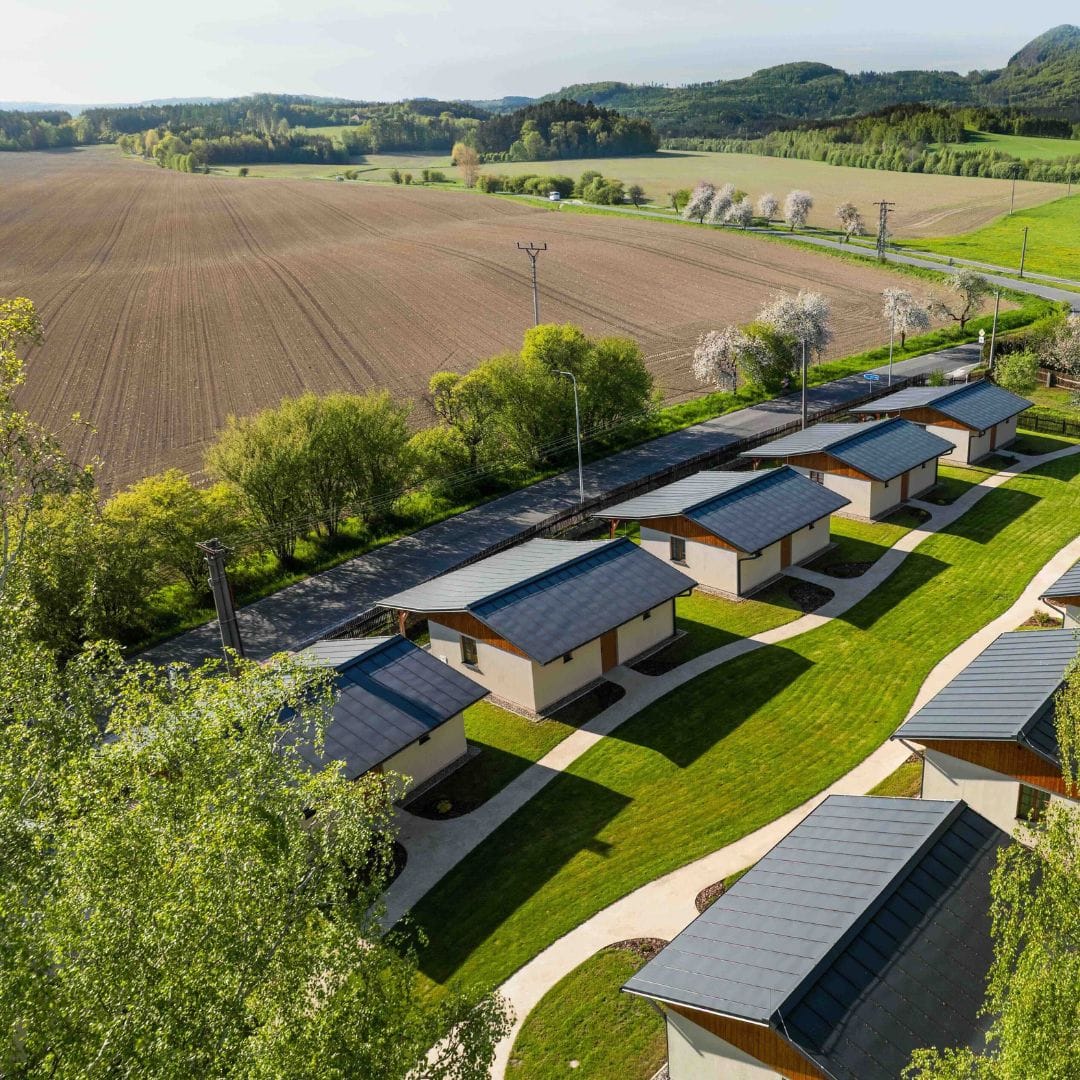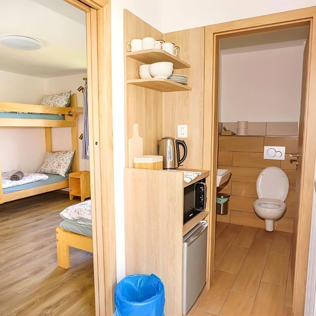 • Ubytování a vybavení: Bungalovy pro 4 lidi. Každý bungalov má 2 ložnice vždy pro 2 lidi, vlastní koupelnu, kuchyňku, Wi-Fi, elektrické vytápění a zastřešenou terasu s posezením. Kuchyňka – chladnička bez mrazáku, mikrovlnná trouba, varná konvice, základní potřeby jako talíře, příbory, hrnky, sklenice, utěrka apod. Peřiny, povlečení peřin, ručníky jsou na místě. Základní toaletní a hygienické potřeby jsou na místě.